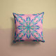 A dreamy pastel pink pillow with teal and blue mandala details that bring balance, joy, and a touch of playful elegance to your home.