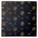 Celestial Blue Gold Sun Moon Stars Ceramic Tile