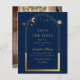 Celestial Blue Save The Date Birthday Quinceanera Invitation features a gold sun, moon and stars frame on a blue background. Inside is your custom Quinceanera save the date information and on the reverse add your favorite photo. Personalize by editing the text in the text boxes. Designed for you by ©2024 Evco Studio www.zazzle.com/store/evcostudio