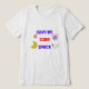This T-shirt features a bold and colorful design with the phrase ‘GIVE ME SOME SPACE.’ The design includes space-related images such as rockets, planets, an astronaut helmet, and stars. The theme of the design is playful and focuses on space exploration and astronomy.