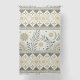 A seamless folk-art inspired pattern curtain combining celestial and botanical elements in earthy tones of beige, gold, teal, and cream. The central band features stylized leaves, flowering branches, crescent moons, and stars, framed by intricate geometric borders of diamonds, zigzags, and circles. With its cultural and artisan feel, this design blends nature with celestial charm, creating a timeless rustic aesthetic. Ideal for folk art enthusiasts, boho and tribal design lovers, or anyone drawn to celestial and botanical motifs. Perfect for seasonal décor, artisan gifts, and rustic-inspired celebrations.