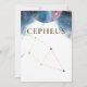Enjoy a celestial constellation theme with our constellation table signs! Collection with many different constellations to choose from, but if you need more, please feel free to add a different constellation name to any of our table number cards (even though the card would not have the correct star formation on the bottom, it will allow you to complete your set). Cepheus constellation table sign with exquisite watercolor stains and a celestial map globe framing the "Cepheus" constellation name in a golden hue. Bellow, "Cepheus" star formation in faux golden foil. Watercolor stains and celestial map in a beautiful blend of blue, navy, turquoise, purple, magenta, fuchsia, lilac, and golden watercolor hues. Ability to change white "background-color" to any color you like by selecting "customize further" (please make sure to make changes in both front and back). Guide your guests to their table with our coordinating table seating chart cards or our seating chart sign. Part of our "Mystic Garden Celestial Collection" with various coordinating products available, including table seating chart cards and seating chart signs.