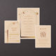 Plain white envelopes are included with paper invitations and will come to fit the invitation size you select. If you don’t need the envelopes, you may choose to not receive them by selecting the dropdown below "Envelopes" and choosing "None." If you’d like to have a design on your envelopes, you can browse all of these available envelopes to find the design that complements your Celestial Champagne Gold Elegant Photo Wedding Invitation.