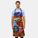 Up some magic in the kitchen with this stunning celestial chaos apron this high detailed fantasy design features for vibrant moon faces representing the elements set against a dramatic backdrop of lightning strikes, fiery dragons and a witch at her cauldron from the winking pink moon to the stern orange sun face this apron is a masterpiece of Gothic art and supernatural energy perfect for the mystical baker the Halloween host or anyone