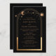 Plain white envelopes are included with paper invitations and will come to fit the invitation size you select. If you don’t need the envelopes, you may choose to not receive them by selecting the dropdown below "Envelopes" and choosing "None." If you’d like to have a design on your envelopes, you can browse all of these available envelopes to find the design that complements your Mystical Chic Black Gold Star Moon Astronomy Space Invitation.