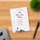 Elegant celestial theme wedding Save the Date featuring a beautiful illustration showing crescent moon, stars and mountains with modern typography.