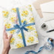 Wrap your gifts in soft celestial spring charm with this elegant daffodil floral wrapping paper. Featuring delicate watercolor yellow daffodil clusters paired with tiny golden crescent moons and airy sage leaves, this seamless pattern brings a dreamy botanical touch to every present.