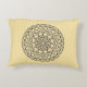 A lace-like concentric circle mandala in dark blue with bright blue and gold star-like dots spangled among the layers makes for a fun, design that brings to mind a starry night sky.