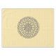 A lace-like concentric circle mandala in dark blue with bright blue and gold star-like dots spangled among the layers makes for a fun, design that brings to mind a starry night sky.