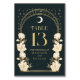 Elevate your event with elegance! These Art Nouveau table cards feature golden arches, shimmering stars, and delicate white flowers set against a deep blue backdrop—a timeless design for weddings, dinners, or celebrations. Add a touch of vintage charm to your table decor today! Please note that the gold on this product is NOT real foil; it is printed flat. Items are printed exactly as they appear on your screen when you add to the cart, so personalize and add each table number you need to your cart individually.