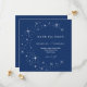 Invite your guests to a night of romance and starlight with this Celestial Elegant Wedding Moon Blue Save The Date from the Celestial Elegant Wedding Collection. Featuring a deep navy blue background adorned with twinkling stars and refined typography, this modern celestial design is perfect for couples who love a minimalist yet luxurious aesthetic. Easily personalize with your names, wedding date, and venue details for a fully customized touch. Ideal for celestial weddings, winter celebrations, or elegant evening receptions. Pair it with matching RSVP cards, programs, menus, and signage for a cohesive wedding suite.