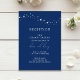 Invite your guests to a night of romance and starlight with this Celestial Elegant Wedding Navy Blue Reception Enclosure Card from the Celestial Elegant Wedding Collection. Featuring a deep navy blue background adorned with twinkling stars and refined typography, this modern celestial design is perfect for couples who love a minimalist yet luxurious aesthetic. Easily personalize with your names, wedding date, and venue details for a fully customized touch. Ideal for celestial weddings, winter celebrations, or elegant evening receptions. Pair it with matching RSVP cards, programs, menus, and signage for a cohesive wedding suite.