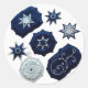 This artwork features a series of celestial symbols intricately embroidered on cloth using silver and midnight blue threads. The design includes swirling star stitching patterns that evoke a sense of cosmic wonder and mysticism. The embroidery highlights craftsmanship and detailed textile art, appealing to those who appreciate celestial themes and elegant, handcrafted styles.