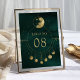 Celestial Emerald Gold Moon Phases Wedding Table Number