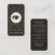 This business card features a tarot card style design in a black and cream colour palette. On the reverse is space for details about how to care for lashes after a treatment. The illustration shows a mystical eye with long eyelashes surrounded by twinkling stars. This would be perfect for any beautician, salon or lash specialist who prefers an alternative style business card and wants to make their lash aftercare card memorable.