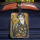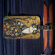 This image features a stunning cat rendered in the artistic style reminiscent of Gustav Klimt. The cat, with its striking yellow eyes, white and black fur, and intricate, swirling patterns on its body, exudes a regal and mysterious aura. The background is richly detailed with golden hues, organic shapes, and floral motifs, blending seamlessly into the cat's figure, which is adorned with ornate circular patterns and delicate embellishments. The overall effect is a mesmerizing fusion of natural beauty and luxurious, ornamental design.