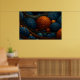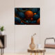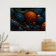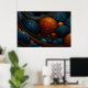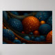 A mesmerizing digital artwork featuring glowing blue and orange spheres nestled among swirling, ribbon-like structures. The composition evokes a fantastical universe or microscopic world, rich in texture and depth. Perfect for lovers of abstract art, cosmic themes, and vibrant visual storytelling.
