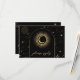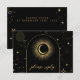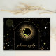 Celestial mystical personalized wedding response card featuring arch frame, galaxy milky way midnight sky with star dust, crescent moon and other astrological symbols in black and golden colors. This card is easily editable. If you need help with the customization of this card or you need more matching products for this collection kindly message me via Zazzle.