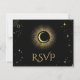 Celestial mystical personalized wedding response card featuring galaxy milky way midnight sky with star dust, crescent moon and other astrological symbols in black and golden colors. This card is easily editable. If you need help with the customization of this card or you need more matching products for this collection kindly message me via Zazzle.