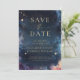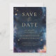 Announce your wedding in style with the Celestial Waters Midnight Blue Save the Date, a romantic and modern design perfect for couples planning a celestial-themed celebration. The deep navy and midnight blue background is adorned with gold-look digital accents (please note: not real foil), creating the dreamy feel of a starlit sky filled with constellations and cosmic charm.
