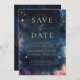 This elegant save the date features a customizable photo template — ideal for sharing a favorite engagement picture. Perfect for moon and stars weddings, galaxy weddings, stargazing themes, and astrology-inspired events, this card captures the magic of love written in the stars.