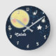 Celestial Glow Moon Nursery Room Personalized Name Round Clock