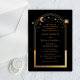 Celestial Gold Sun Moon Astronomy Wedding Acrylic Invitations features gold sun, moon and stars with a golden frame on a black acrylic background. Inside is your custom wedding invitation information. Personalize by editing the text in the text boxes. Designed for you by Evco Studio www.zazzle.com/store/evcostudio