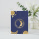 Celestial gold sun moon phases eclipse on a purple blue background.