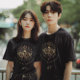 My 11 yo wore adult XL (5’7” 165#). The 8yo is small framed. She wore adult small and tied it in the back. Dark haired male wore adult large and 5’9”, 110# female wore adult medium . Good quality dark Heather gray, Gildan brand shirt. -it was next up from basic choice and cost about $20 per shirt. Not too thick or thin. Washed and dried well, no major shrinkage. Not see-through. Can wear a bra under it fine. Screen print is just as shown and well done, front and back.