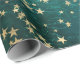 Celestial Golden Stars on Teal Galaxy Background Wrapping Paper