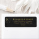 This Celestial Gothic black and gold return address label features refined celestial detailing with delicate lunar phases, geometric accents, and antique gold elements set against a deep charcoal background.