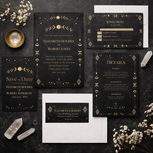 Fully customizable with your names and wedding date, it coordinates seamlessly with the entire Celestial Gothic Luxury Wedding Collection.