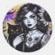 Celestial Gothic Witch and Black Cat Classic Round Sticker