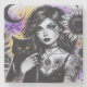 Celestial Gothic Witch and Black Cat Stone Coaster