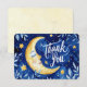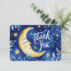 Overall, the thank-you card captures a sense of appreciation that is both celestial and heartfelt, inviting the recipient to bask in the warmth of the crescent moon's grateful gaze under a beautifully painted night sky.