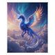 A majestic, noble ethereal gryphon shimmering with celestial light in shades of sapphire blue, amethyst purple, and sun-kissed gold. Its feathers and fur glow softly, reflecting the cosmic radiance. The gryphon’s powerful wings leave trails of sparkling, shimmering energy as it soars through a vibrant sky filled with swirling auroras and gentle, pastel clouds. The scene exudes a sense of fantasy majesty and divine grace, capturing the creature’s majestic presence against a dazzling, otherworldly backdrop. The overall atmosphere is both awe-inspiring and serene, emphasizing the gryphon’s noble and magical nature.