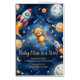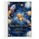 This illustration tells the story of a grand expedition through the clouds. It’s not just a journey; it’s a celebration of friendship and new beginnings. A group of forest and exotic friends—including a koala, a fox, and a tiny hedgehog—have piled into a magnificently decorated hot air balloon to soar through a star-studded sky. The design captures that magical feeling of "The Sky’s the Limit," representing the soaring hopes and dreams parents have for their new little explorer.