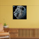 Ai art depicting a black and white lion on a mystical night with a starry background.
