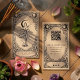 Featuring an elegant illustration of a lotus flower and moon halo surrounding a peaceful yoga pose, this design symbolizes balance, mindfulness, and spiritual growth. The ornate vintage frame adds a mystical tarot-inspired aesthetic that makes the card unique and eye-catching.