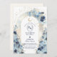 A luxurious celestial-themed wedding design featuring a midnight blue floral garden, shimmering gold accents, and a golden crescent moon framed by an ornate arch. Perfect for couples seeking a romantic, mystical, and starry-night-inspired celebration with elegant cosmic details.
