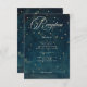 Step into a dreamy celestial realm with our enchanting vintage-themed wedding reception card. Inspired by the mysteries of the cosmos, our design features a midnight blue backdrop adorned with delicate gold stars, creating a mesmerizing celestial horizon. A graceful ivory crescent moon graces the sky, adding a touch of timeless elegance. With classic fonts reminiscent of bygone eras, these cards evoke a sense of nostalgia and romance. Turn over to reveal a captivating vintage graphic of a serene man in the moon crescent, completing the celestial allure. Illuminate your love story with celestial charm and invite your guests to embark on a celestial journey with you. Created by Simply Farmhouse Press.