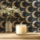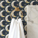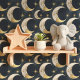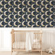 Transform your space into a celestial dreamscape with this enchanting moon and stars wallpaper. Golden crescent moons adorned with delicate floral details shimmer against a deep blue starry sky, creating a captivating and magical atmosphere. This peel and stick wallpaper is easy to apply and remove, making it perfect for adding a touch of whimsical charm to any room.