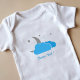 A baby bodysuit including a celestial and ethereal design with gray moon, blue clouds and some stars and a customizable French text "Bonne Nuit !": a nice gift for a newborn!