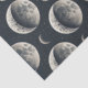 Elegant moon phase and celestial pattern tissue paper featuring crescent moons, stars, and radiant lunar details on a dark background. Ideal for astrology lovers, moon enthusiasts, spiritual seekers, stargazers, and fans of mystical celestial style.