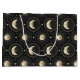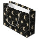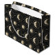 Elegant moon phase and celestial pattern gift bag featuring crescent moons, stars, and radiant lunar details on a dark background. Ideal for astrology lovers, moon enthusiasts, spiritual seekers, stargazers, and fans of mystical celestial style.