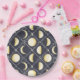This ethereal repeating pattern features a celestial illustration of the moon’s enchanting cycle from new to full, each phase surrounded by a delicate diamond lattice of stars and vines. Set against a deep, midnight blue, this lunar design invites the wonder of the cosmos and the deep quiet of the night.