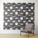 This ethereal repeating pattern features a celestial illustration of the moon’s enchanting cycle from new to full, each phase surrounded by a delicate diamond lattice of stars and vines. Set against a deep, midnight blue, this lunar design invites the wonder of the cosmos and the deep quiet of the night.
