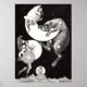 This vintage illustration is about celestial figures. They are shown as mythological gods and goddesses. The vintage constellation image is from a book published in the 1800s. The Moon Goddess, called "Alla Luna" shows the Goddess Luna, the Roman moon goddess, clinging onto the top of her crescent moon, apparently running from a star-clad bear played by Ursa Major, the Great Bear constellation, and a Roman soldier casually strolling in, playing Mars. Relaxing in the back atop a mountain, reading "the gazette," is Mercury. This constellation illustration is a wonderful vintage star and moon image perfect for the astronomer in your life. It's a dreamy gift for lovers of Roman mythology as well as a gift for astronomers who have a deep appreciation for funny vintage astronomy illustrations!