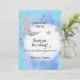 Express your gratitude with our elegant Baby Shower Thank You Card! Designed with a dreamy moon and stars theme, this card features soft baby blue and dark blue watercolor tones, gold accents, and twinkling stars – perfect for a baby boy celebration. Whether you’re thanking guests for their gifts or simply for sharing in your special day, this celestial-themed thank you card adds a heartfelt and stylish touch. Matches perfectly with our full moon and stars baby shower collection for a coordinated look.