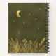 A golden crescent moon and some golden stars look dreamy on this dark green journal. Golden grasses and flowers on the lower edge bring a botanical touch below the night sky. The green background looks like luxurious leather. This journal is personalized with a name in casual script typography.